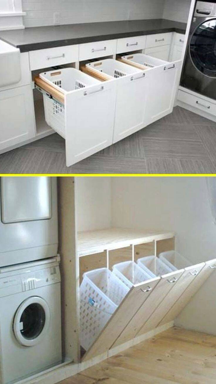 - Paniers et bacs de rangement pour trier le linge et organiser les produits.