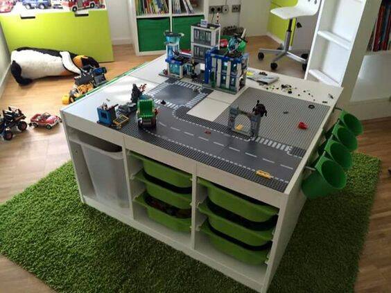 - Coins thématiques avec des rangements adaptés (coin lecture, coin jeux de construction, etc.).