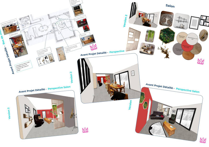Dessins en perspectives avec plusieurs propositions de couleurs de murs