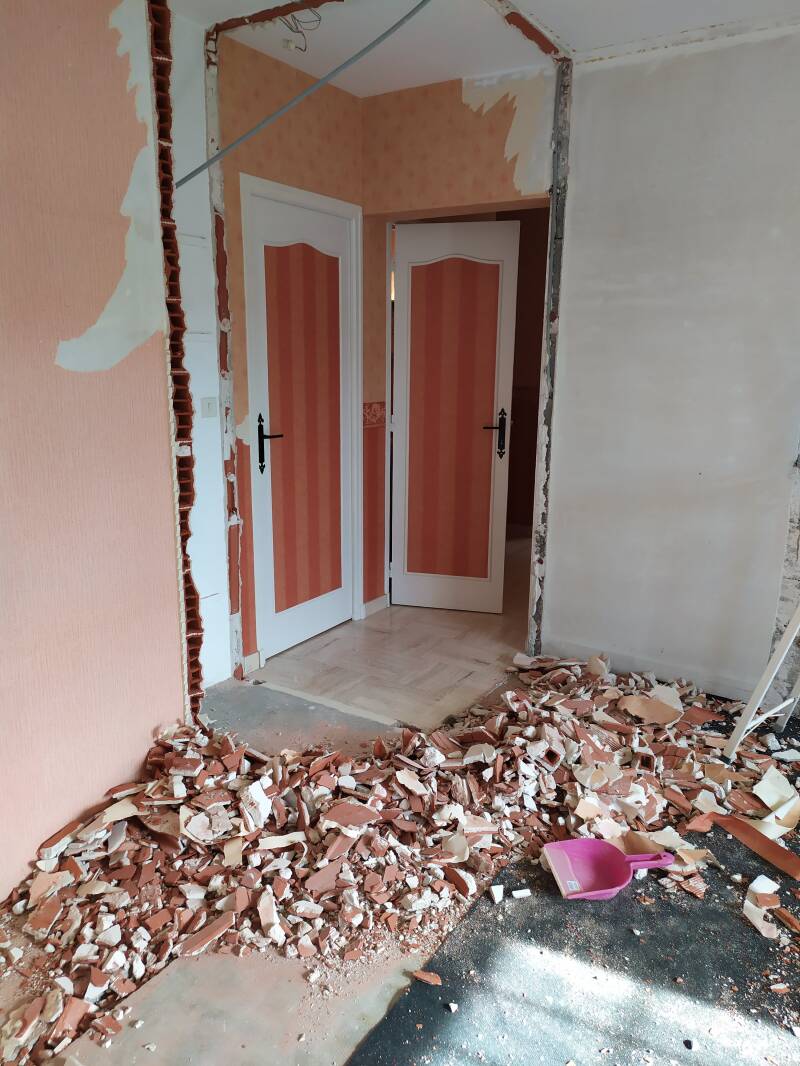 Enlever un mur porteur pour réunir deux pièces et ainsi obtenir une pièce de vie plus grande.