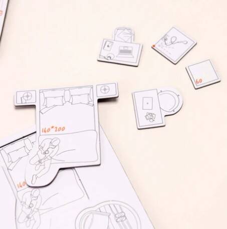 Nous plaçons le plan de la pièce sur le plateau puis les magnets de vos meubles.